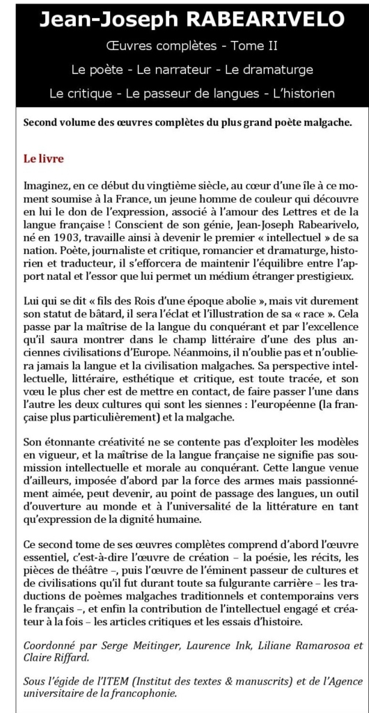 ŒUVRES COMPLÈTES DE JEAN-JOSEPH RABEARIVELO